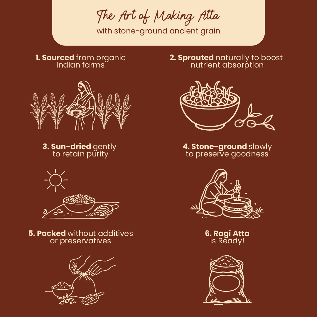 - Enjoy the nutty flavor and health benefits of Organic Sprouted Ragi Atta in your meals.