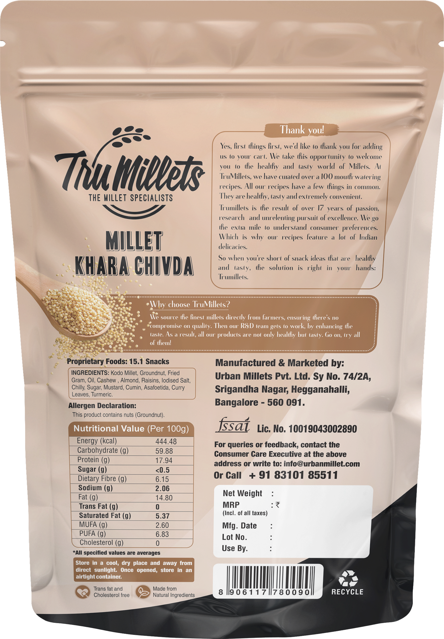 Unlike conventional fried snacks made with refined ingredients, TruMillets Kara Chivda provides a smarter snacking choice without compromising on taste. Rich in fibre and essential nutrients, it keeps you feeling satisfied while supporting a healthier lifestyle.