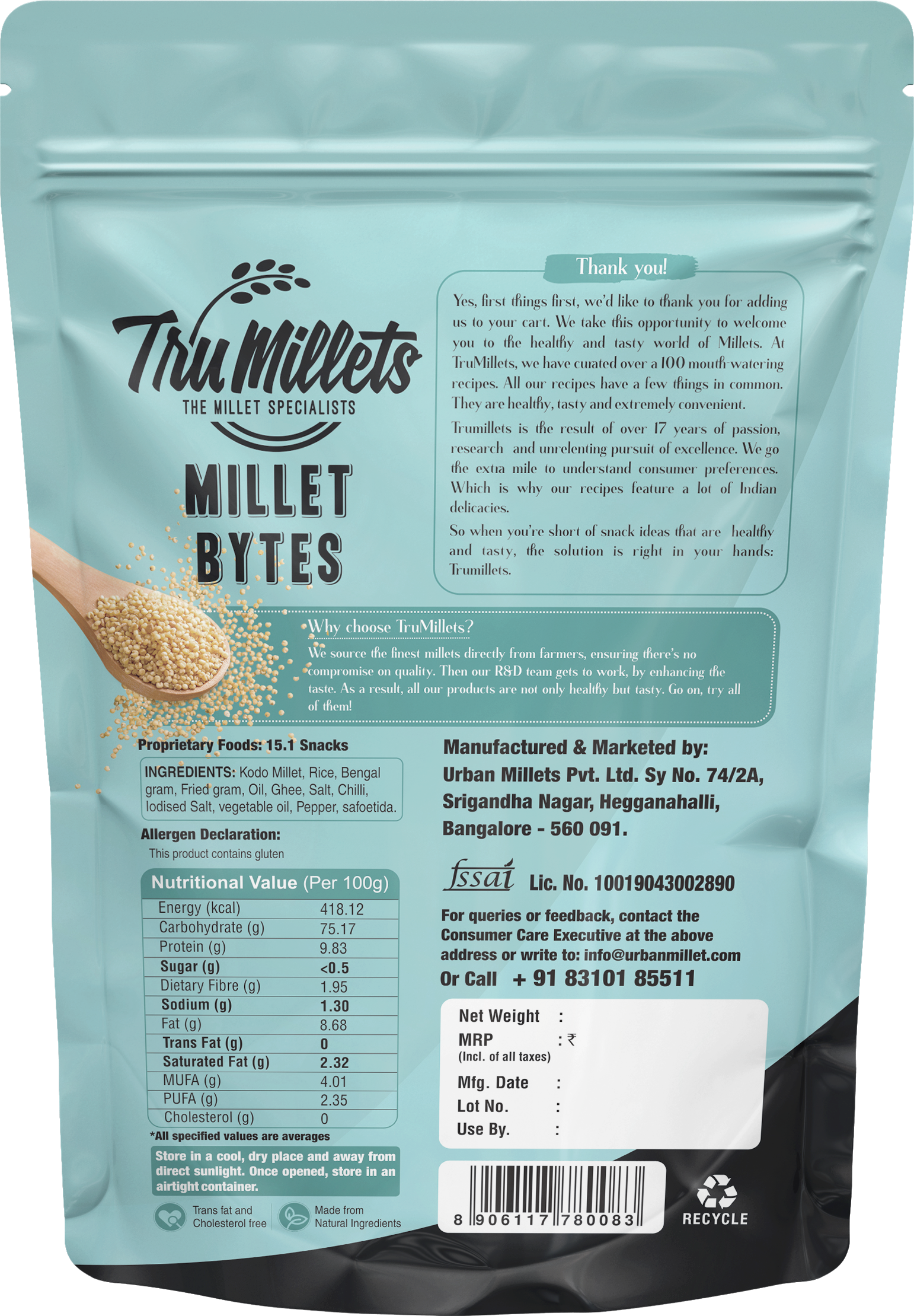 Light, crispy, and flavour-packed, TruMillets Kodo Millet Bites let you snack smarter—without compromising on taste.