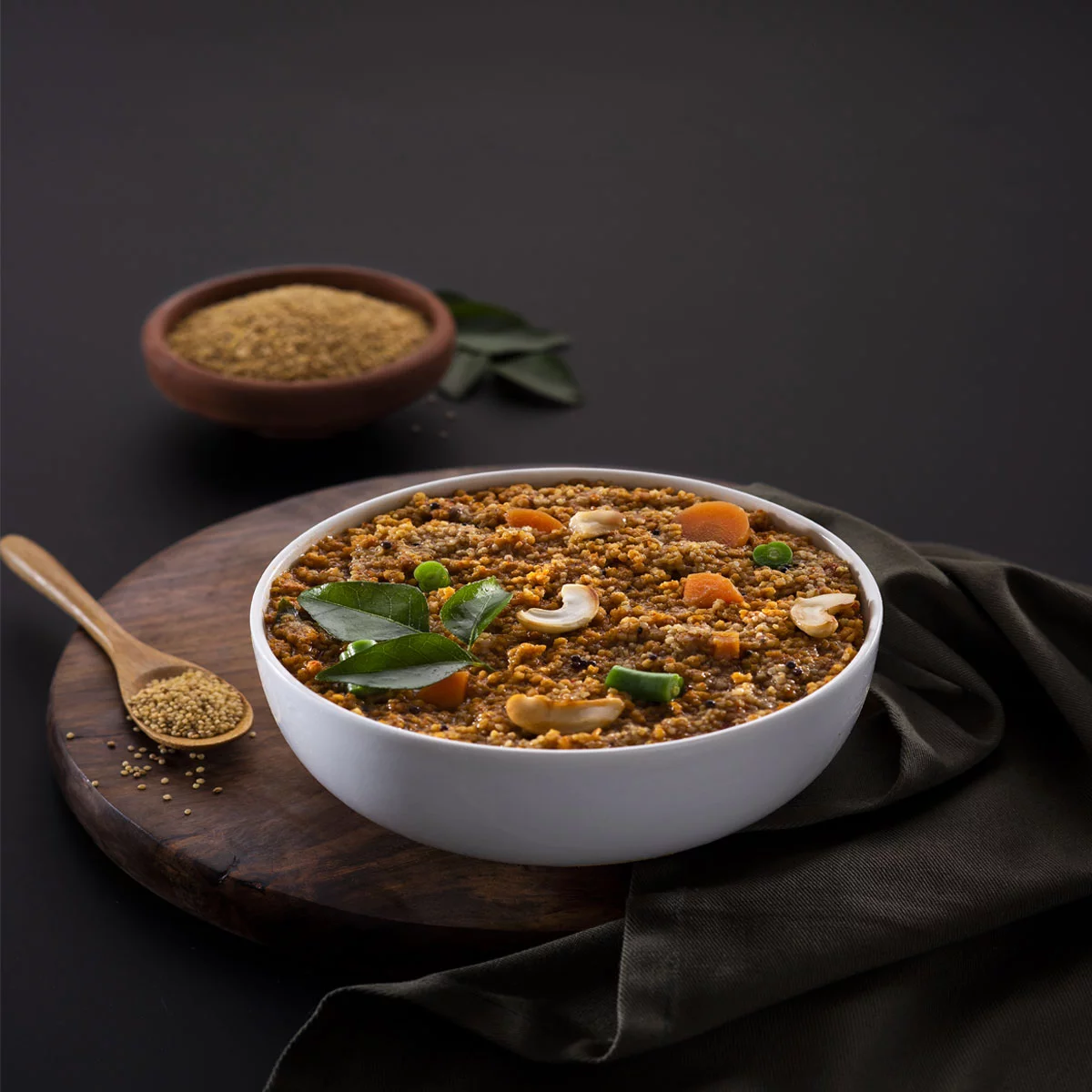 This flavourful mix is prepared using a carefully balanced blend of roasted spices such as coriander seeds, cumin, black pepper, and dried red chillies. Ingredients like cinnamon, cloves, dried curry leaves, and a hint of tamarind add warmth, aroma, and gentle tanginess, creating the signature Bisibelle Bath taste loved across South India.