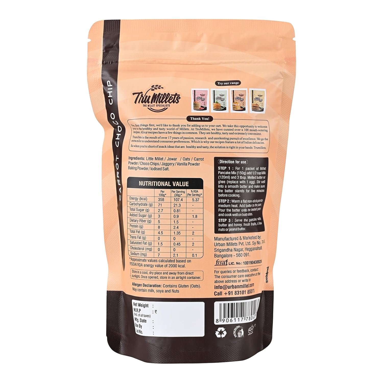 TruMillets Millet Carrot Pancake Mix is a nutritious and flavourful breakfast option crafted for health-conscious individuals and families. Combining the goodness of ancient millets with the natural sweetness of carrot, this mix offers a wholesome and delicious alternative to conventional wheat-based pancake mixes.