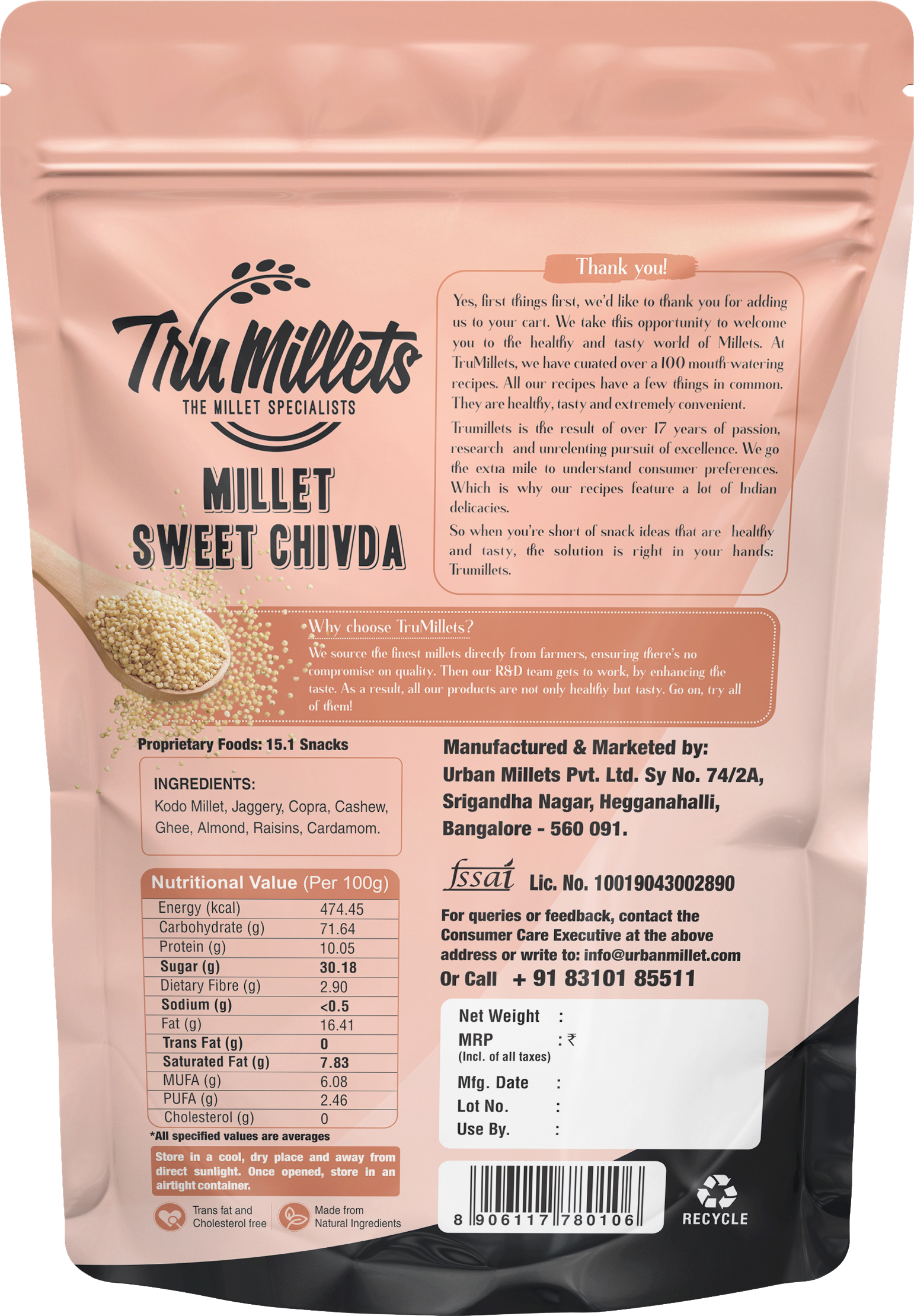 Carefully sourced from selected farmers and minimally processed, TruMillets Sweet Chivda delivers both tradition and nutrition in every bite.